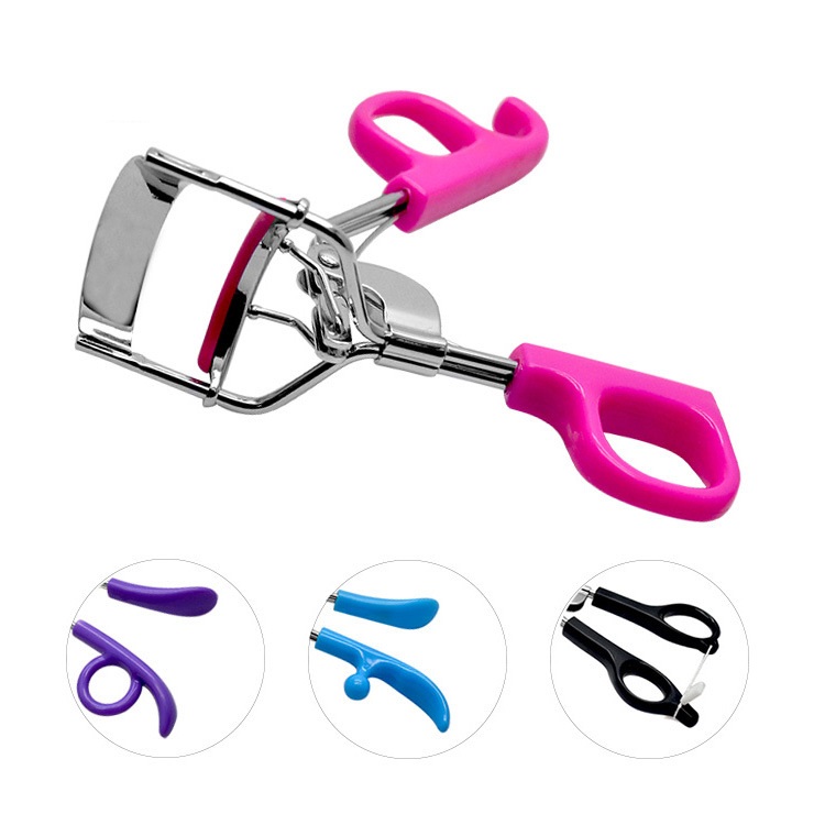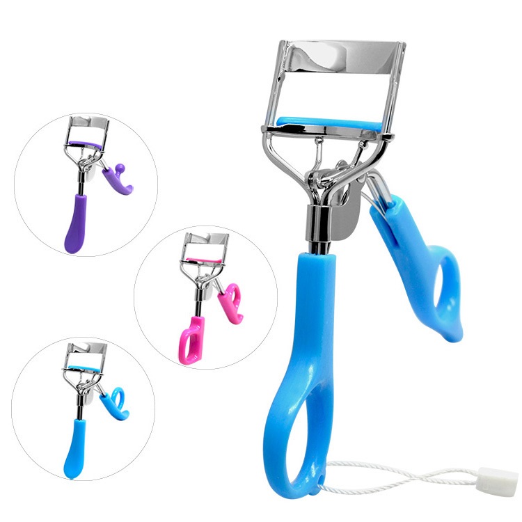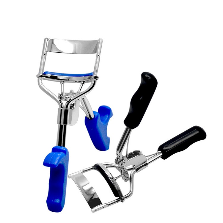 Eyelash curler with plastic handle.
