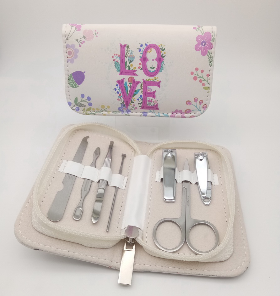 Multi-color allover printing zipper manicure set , customer's artwork and design are welcome